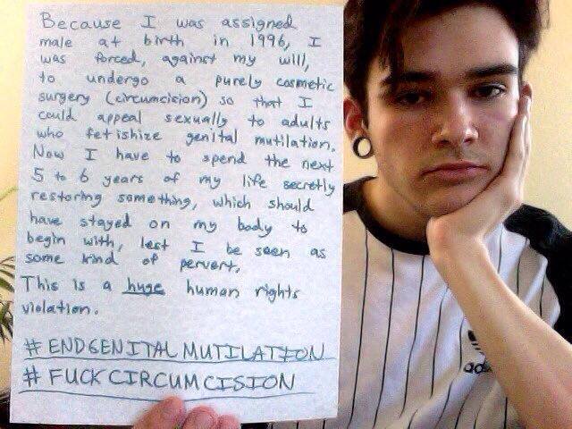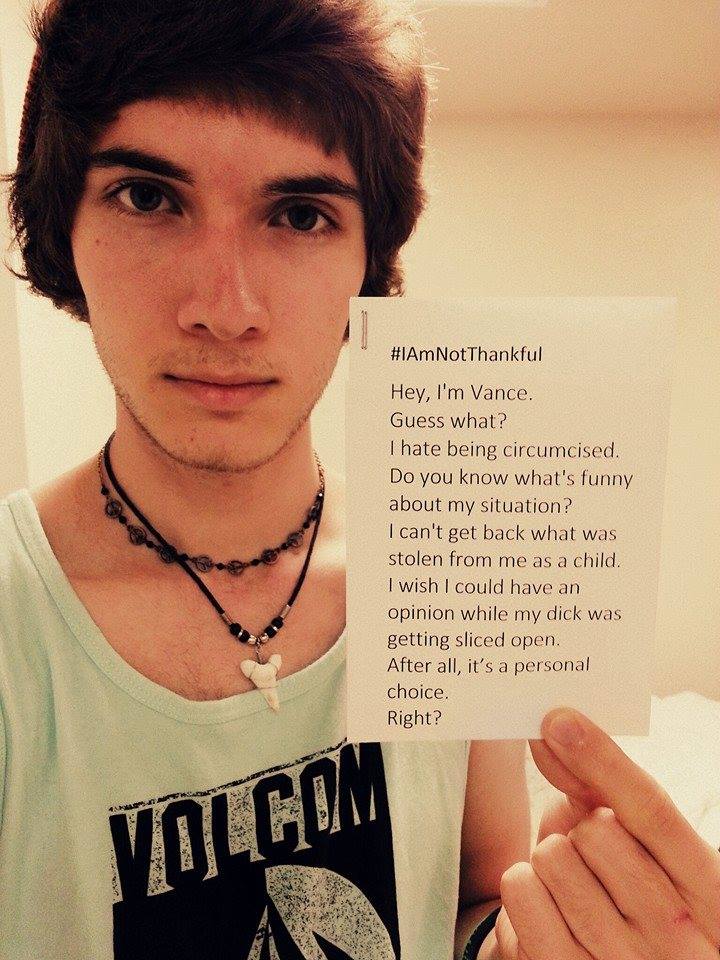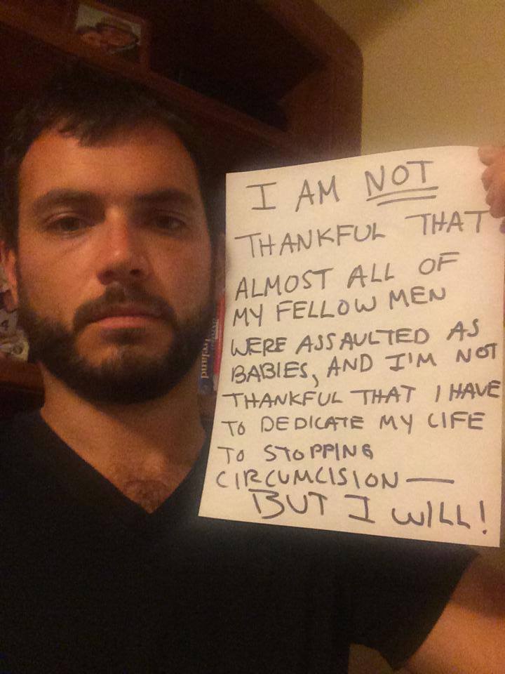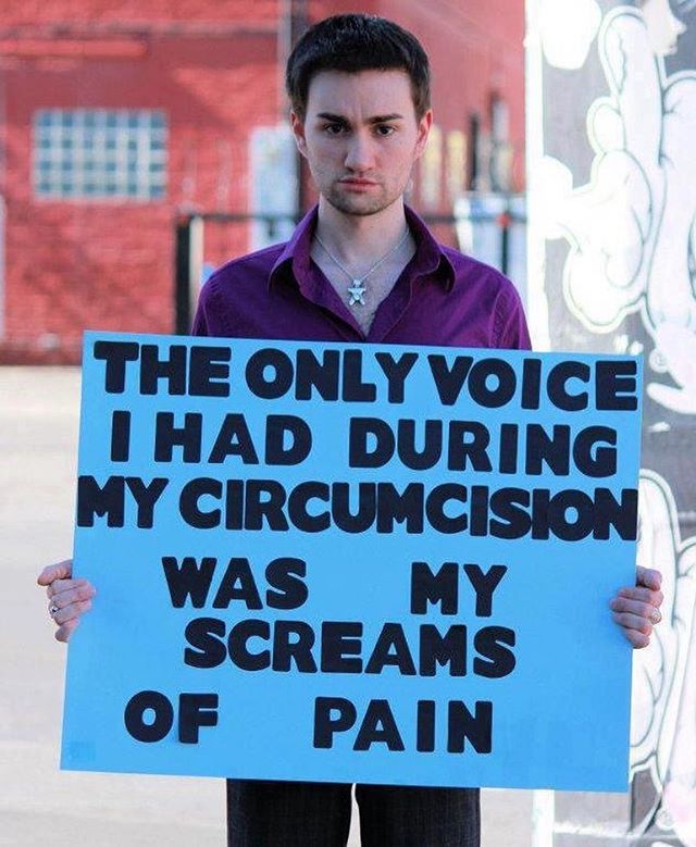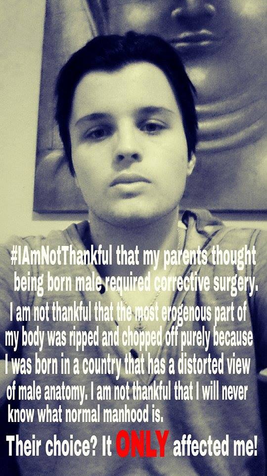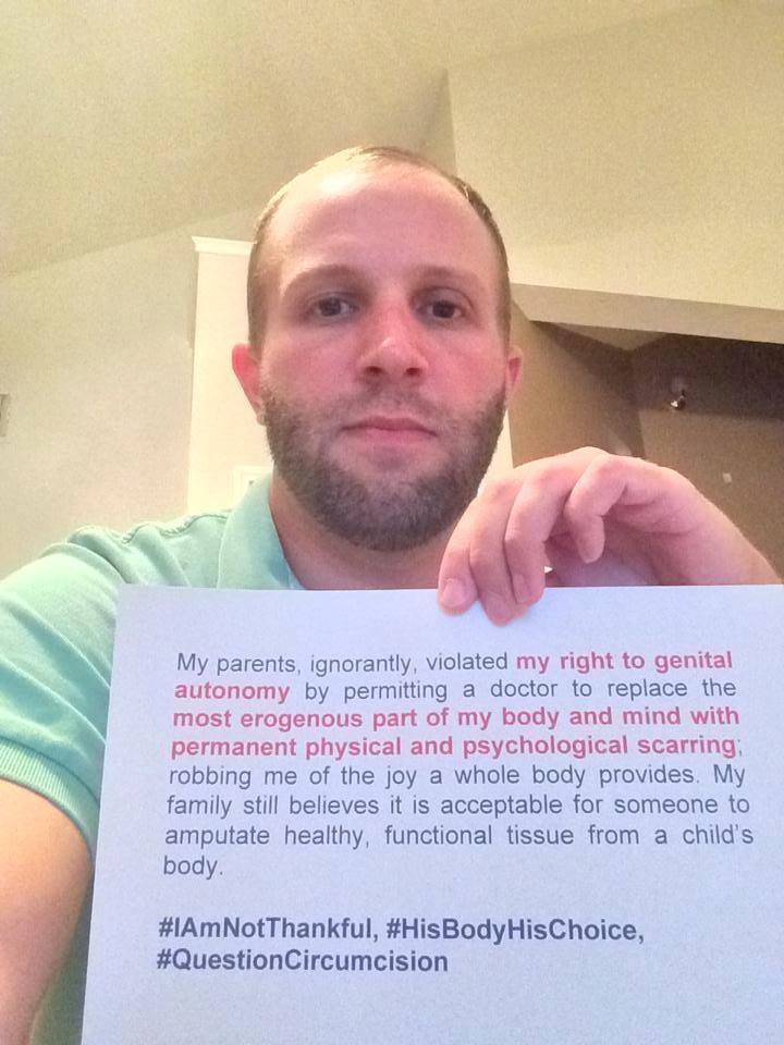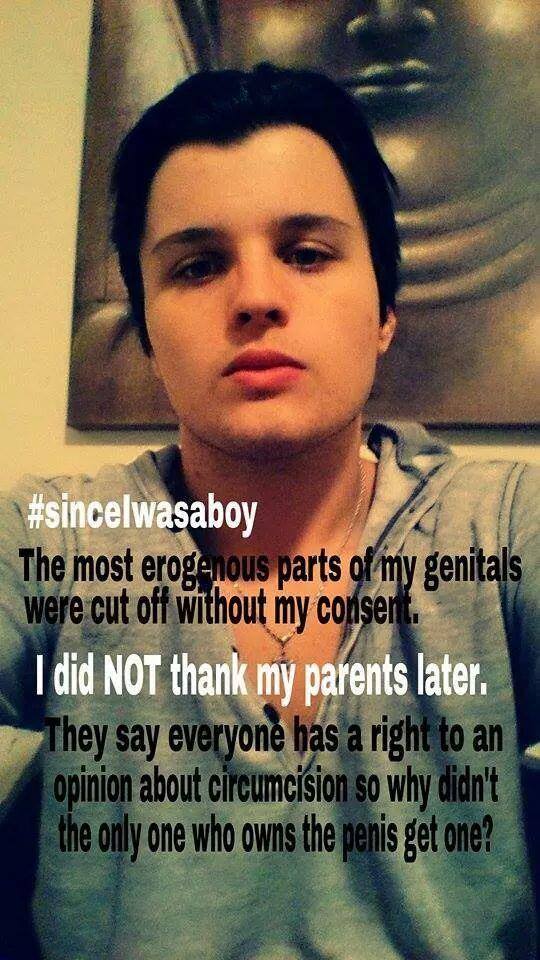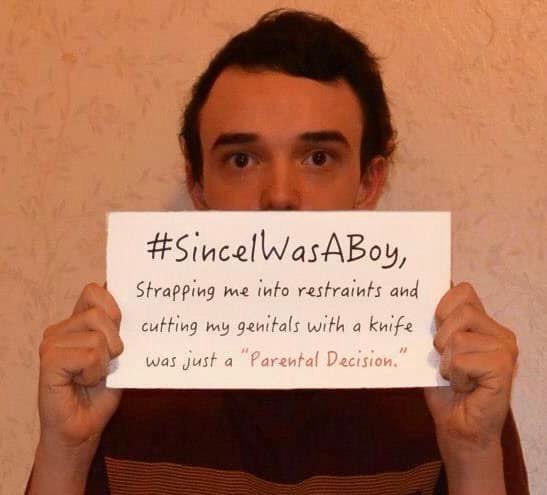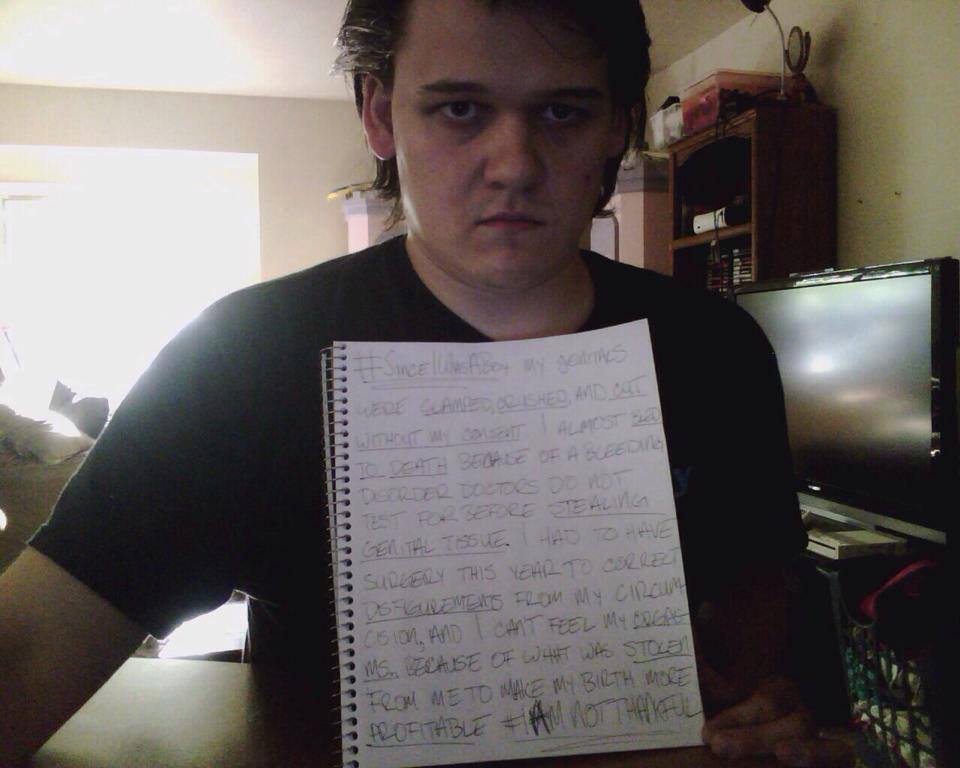 Men have posted images holding signs with #SinceIWasABoy, #IAMNOTTHANKFUL, #MENDOCOMPLAIN, #HisBodyHisChoice, #QuestionCircumcision, #i2 and #Circumcision