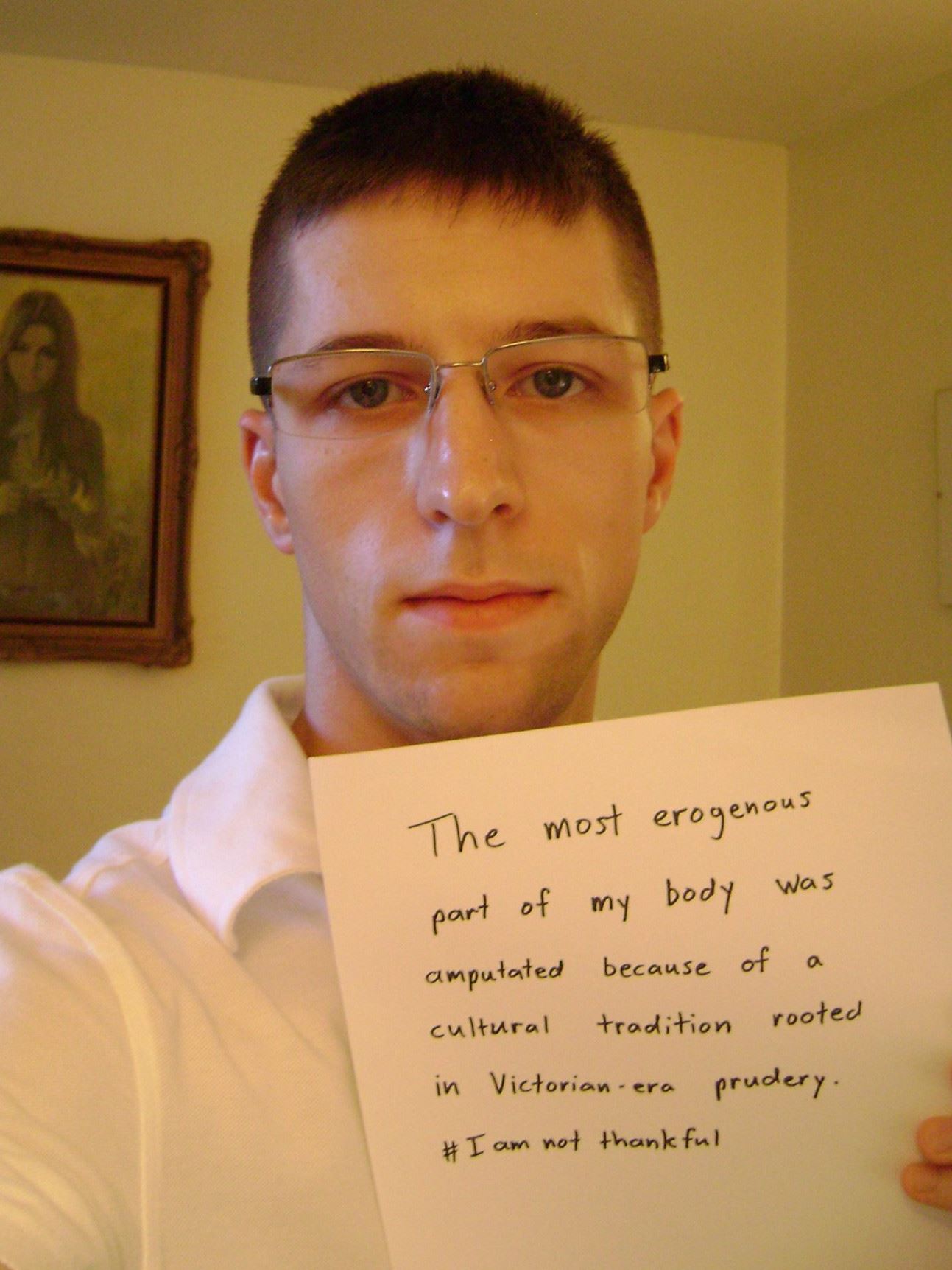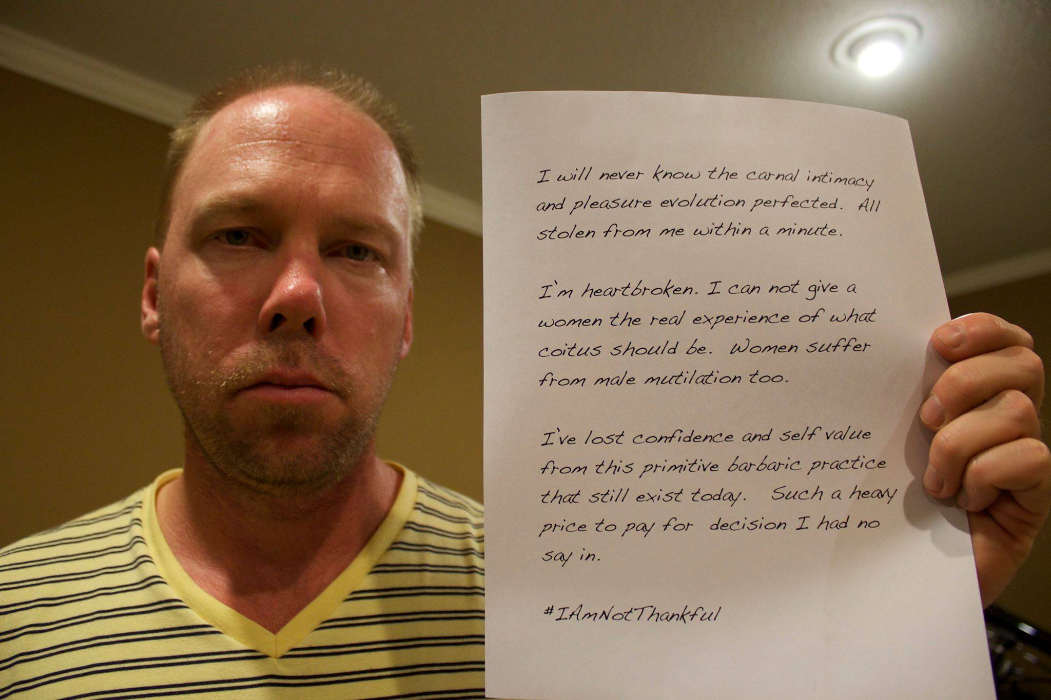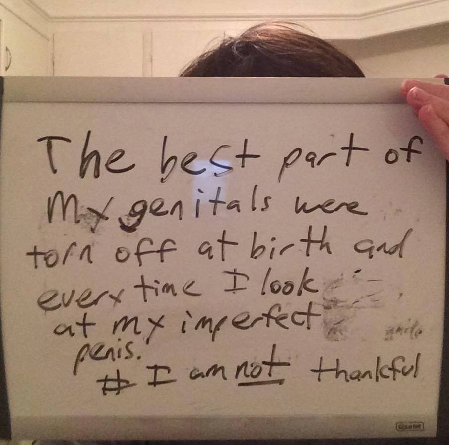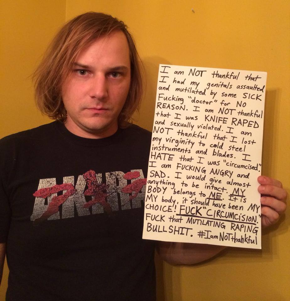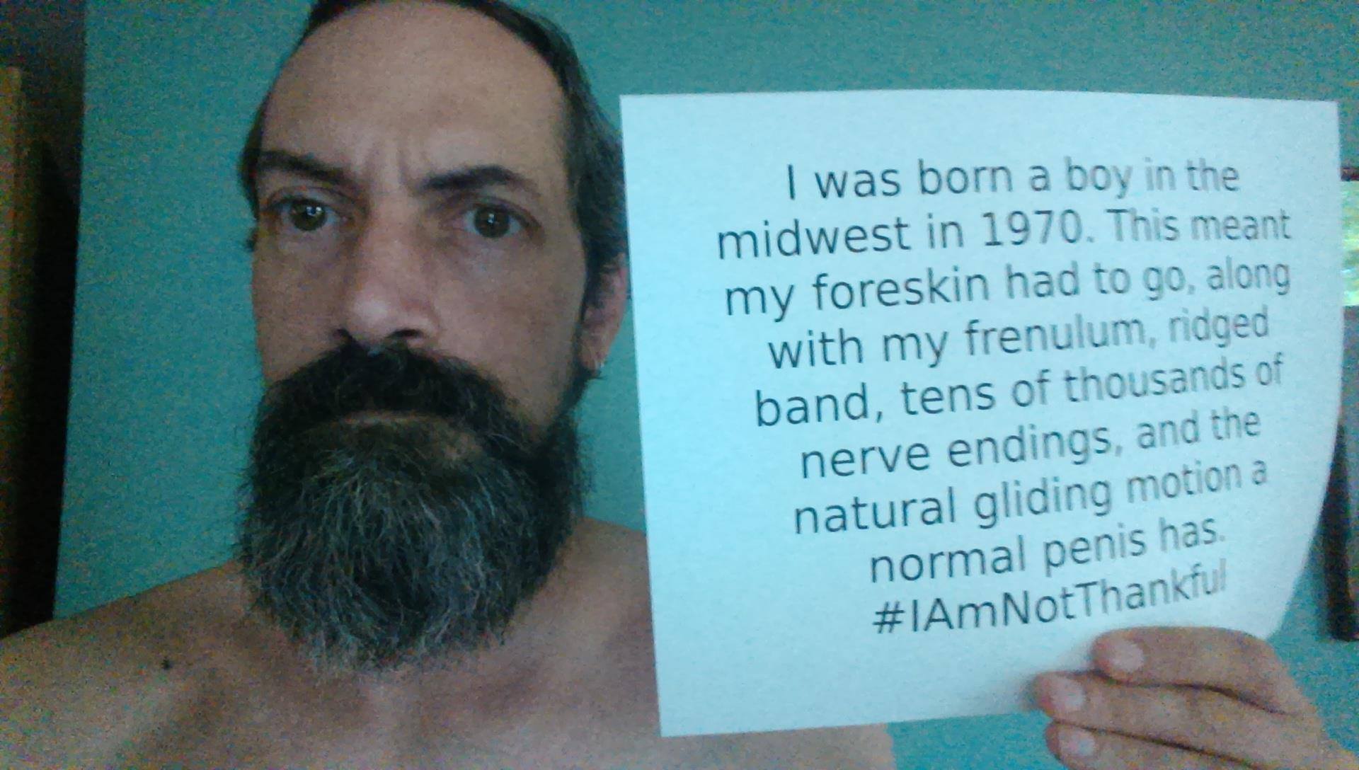 Men have posted images holding signs with #SinceIWasABoy, #IAMNOTTHANKFUL, #MENDOCOMPLAIN, #HisBodyHisChoice, #QuestionCircumcision, #i2 and #Circumcision